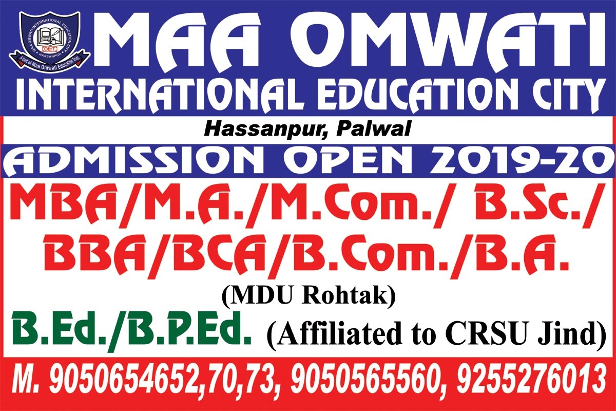 Contact : Maa Omwati International Education City, Hassanpur (Palwal), Haryana Ph.:9050654630, 9050654674. .......