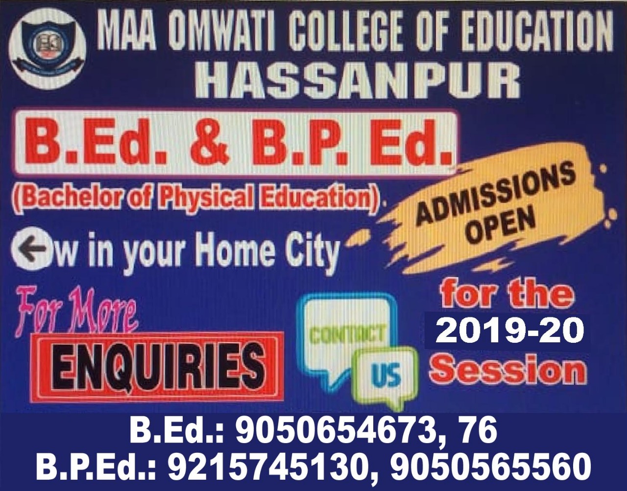 Registration Open for B.P.Ed. & B.Ed. Course at Maa Omwati College of Education, Hassanpur (Palwal)