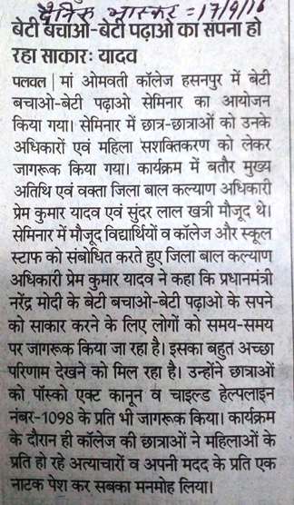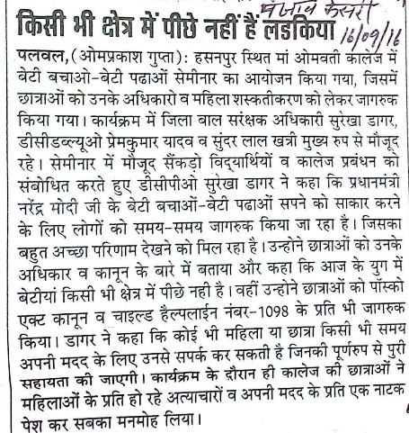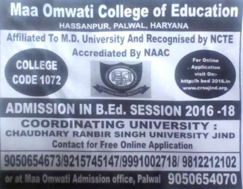 Registration Open for B.P.Ed. & B.Ed. Course at Maa Omwati College of Education, Hassanpur (Palwal)