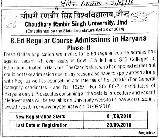 Admission Open in B.Ed. session 2016-18