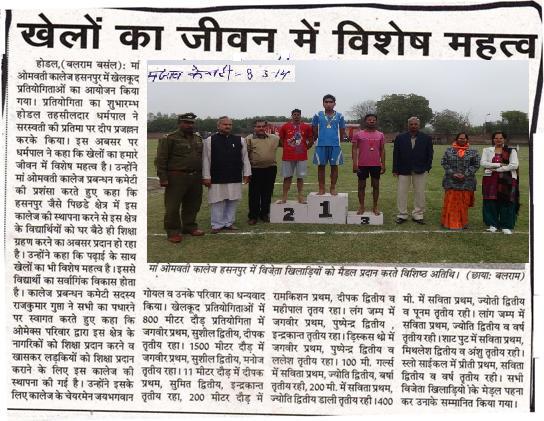 Maa Omwati Education City, Hassanpur is Organising Annual Athletic Meet On 21/03/26.