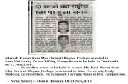 B.A. 3rd year student won 2nd position & B.Com. 1st year student won 4th position in Weight Lifting & Power Lifting Competition Organized by MDU. Rohtak
