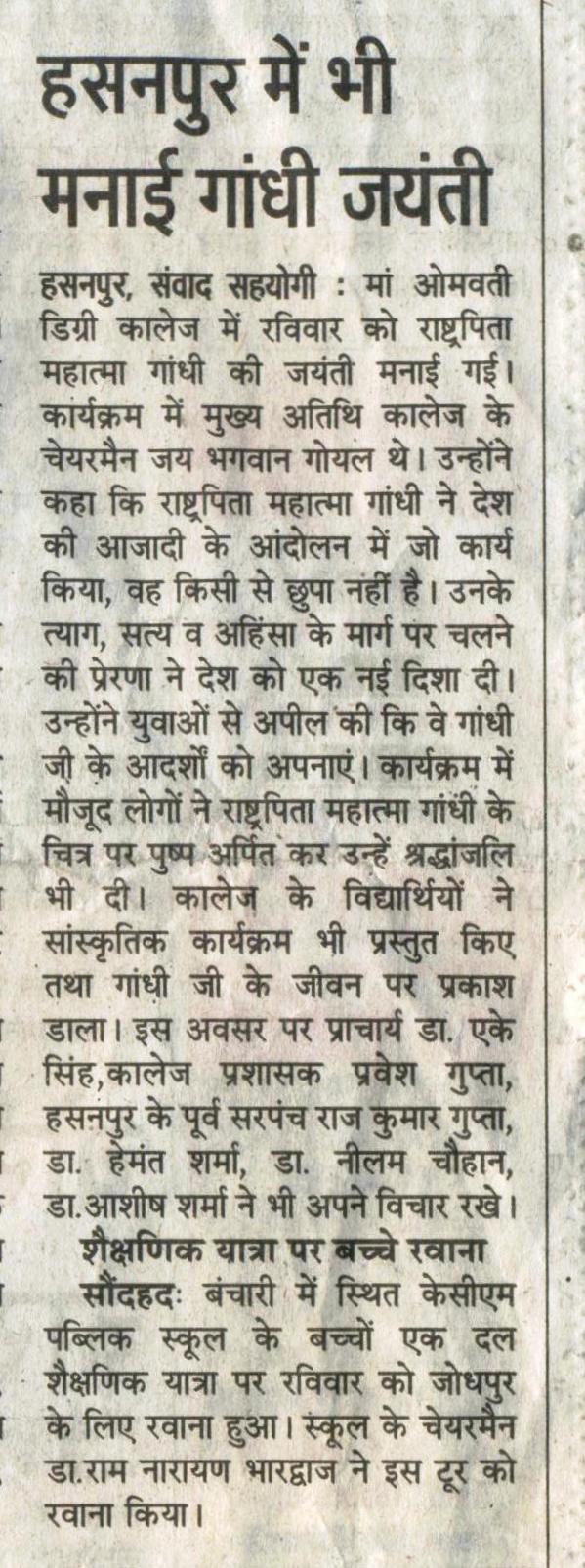 Gandhi Jayanti Celebrated in Maa Omwati Education City
