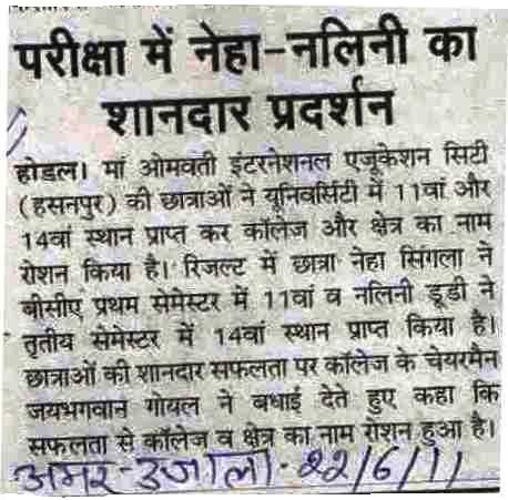 Contact : Maa Omwati International Education City, Hassanpur (Palwal), Haryana Ph.:9050654630, 9050654674. .......