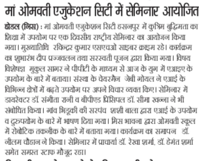 Contact : Maa Omwati International Education City, Hassanpur (Palwal), Haryana Ph.:9050654630, 9050654674. .......