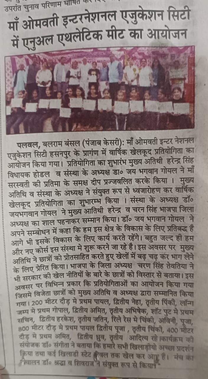 Maa Omwati Education City, Hassanpur is Organising Annual Athletic Meet On 21/03/26.