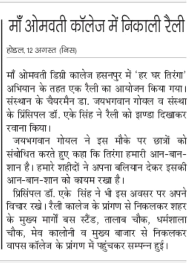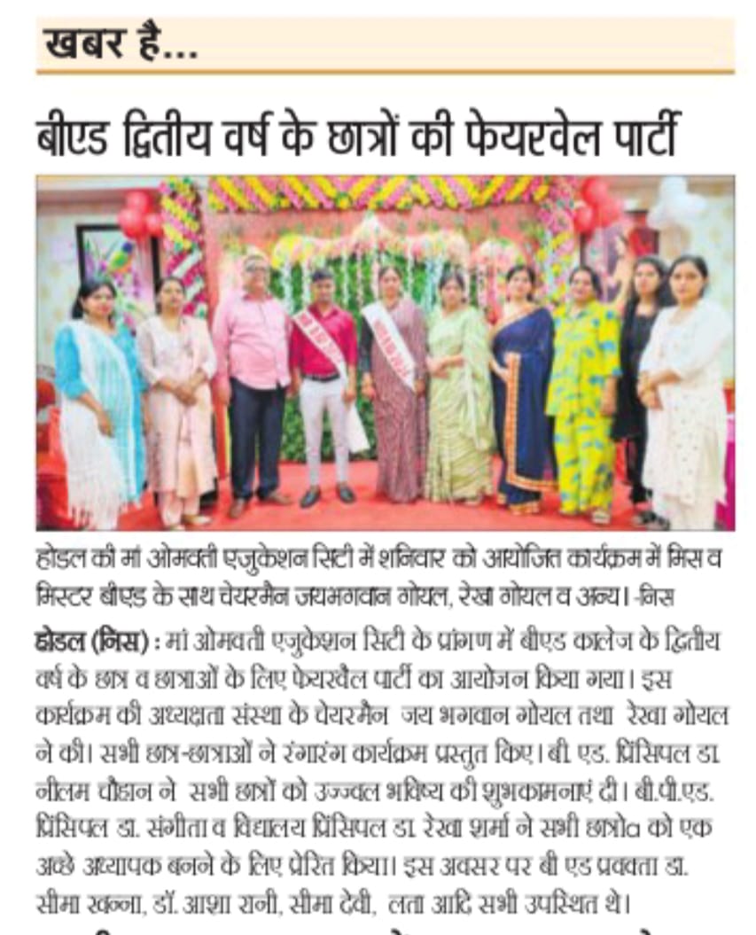 Contact : Maa Omwati International Education City, Hassanpur (Palwal), Haryana Ph.:9050654630, 9050654674. .......