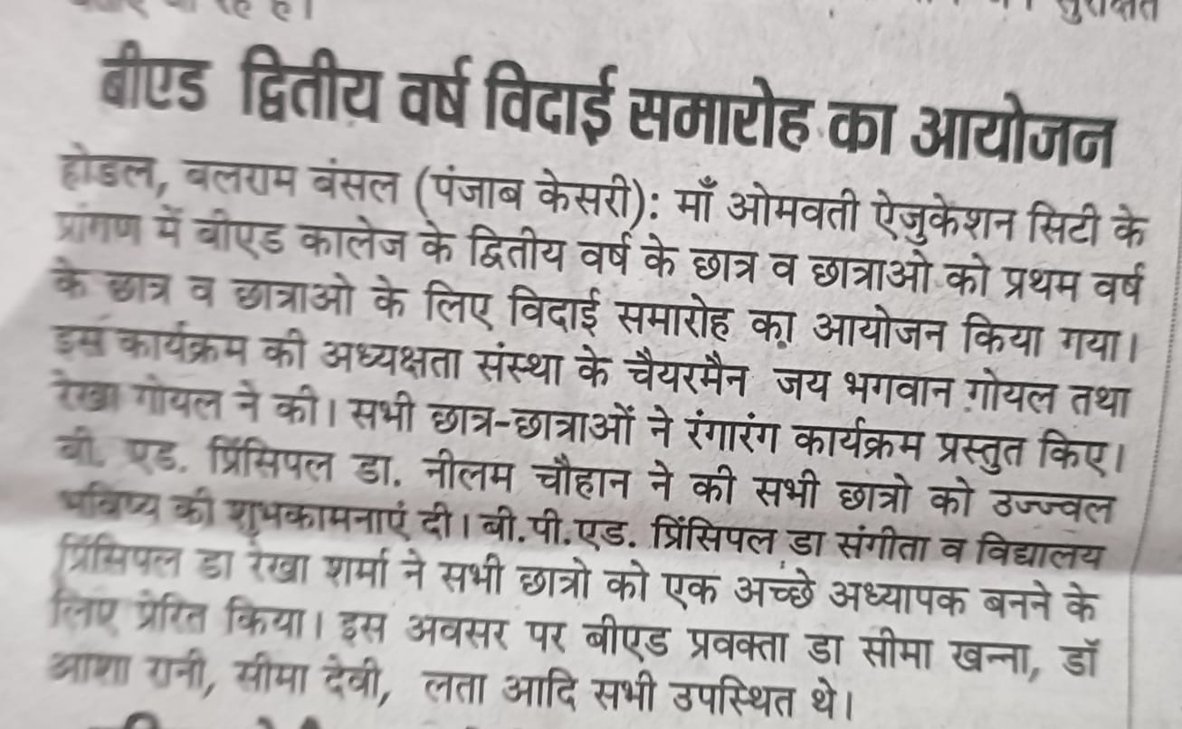 Registration Open for B.P.Ed. & B.Ed. Course at Maa Omwati College of Education, Hassanpur (Palwal)