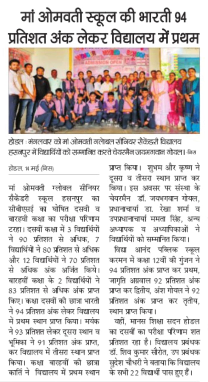Contact: Maa Omwati Global (Convent) Sr. Sec. School, Hassanpur (Palwal), Haryana. Mob.: 9050654630, 9050654674.......