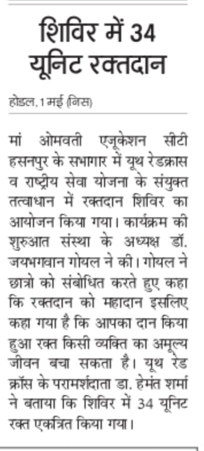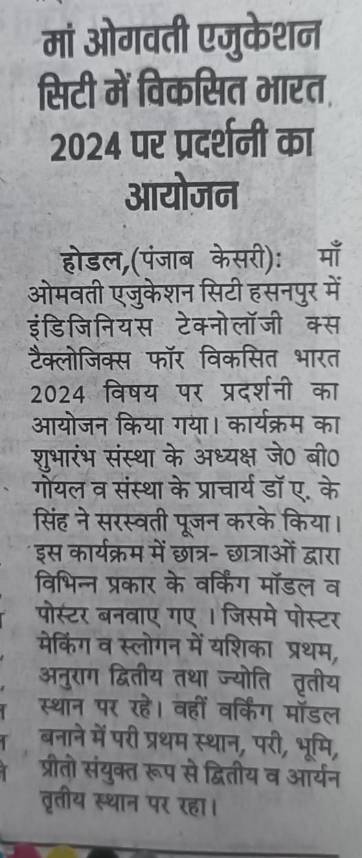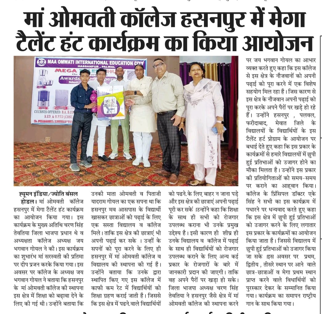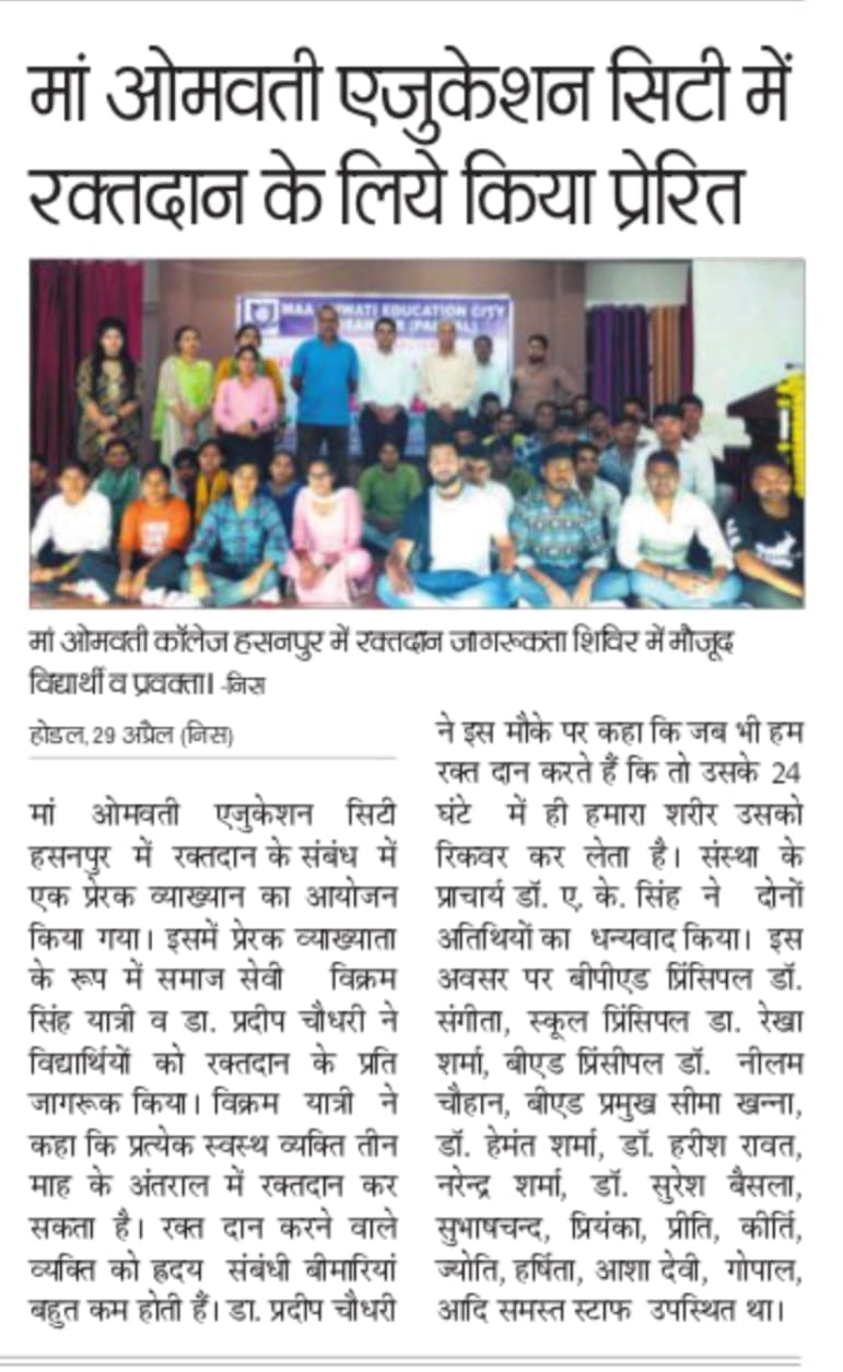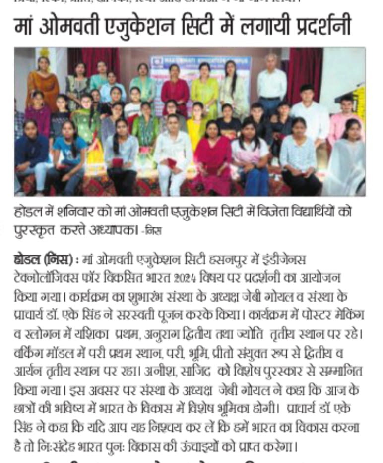 Contact : Maa Omwati International Education City, Hassanpur (Palwal), Haryana Ph.:9050654630, 9050654674. .......
