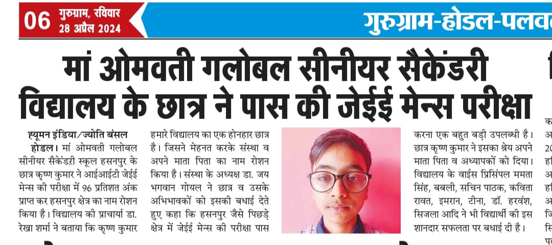 Contact: Maa Omwati Global (Convent) Sr. Sec. School, Hassanpur (Palwal), Haryana. Mob.: 9050654630, 9050654674.......